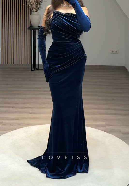Off-Shoulder Strapless Beaded Pleated Sheath Prom Dress