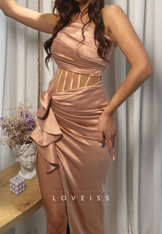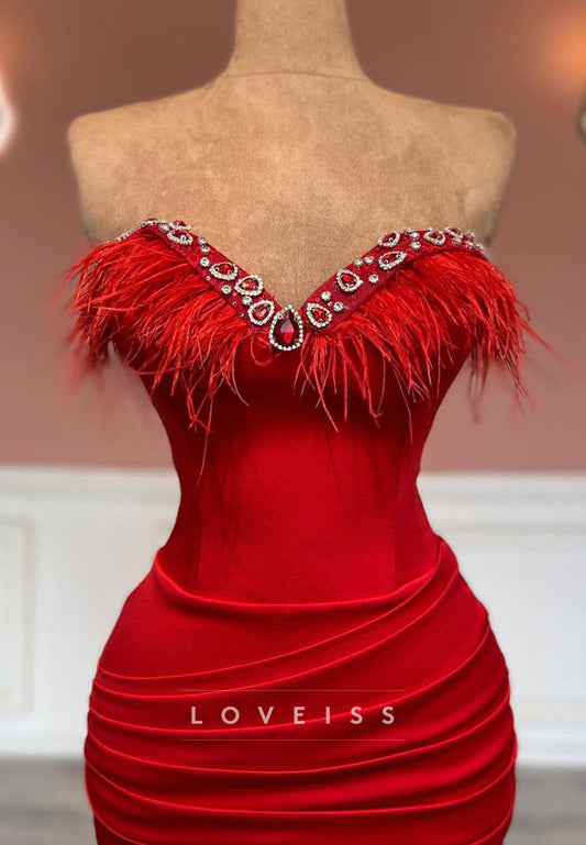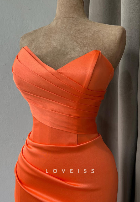 V-Neck Strapless Pleated Sleek Evening Dress Sheath Formal Dress
