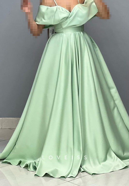 Off-Shoulder Spaghetti Straps Pleated Satin A-Line Prom Dress