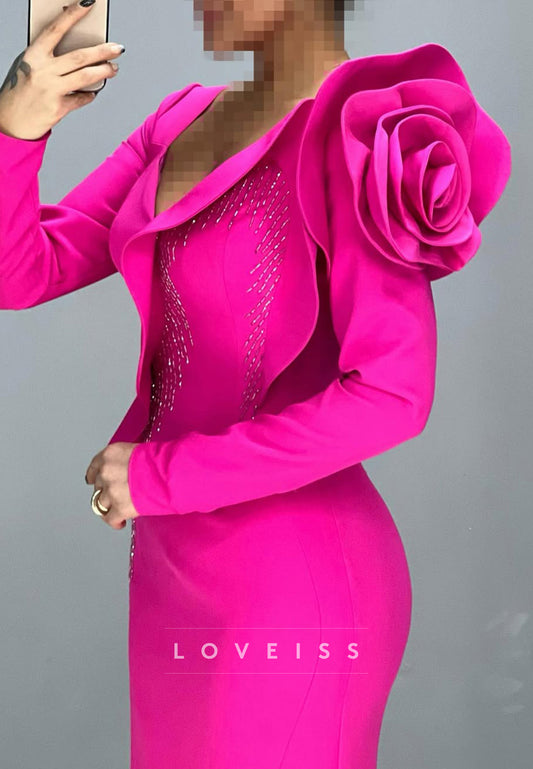 V-Neck Long Sleeves Floral Embellished Mermaid Formal Dress