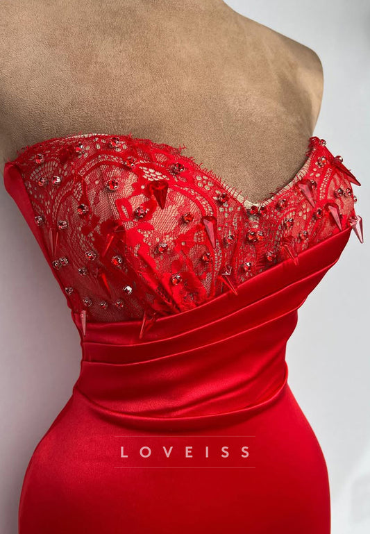 V-Neck Strapless Beaded Pleated Sheath Prom Dress