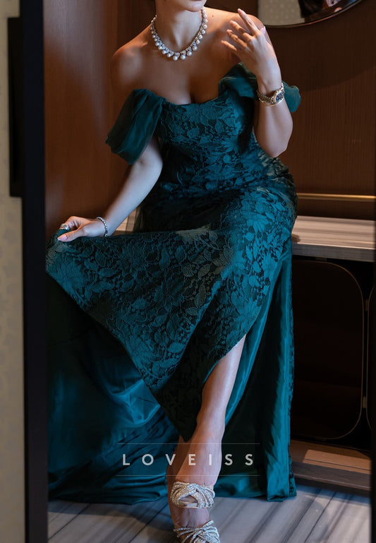 Off-Shoulder Lace Appliques Sheath Evening Dress