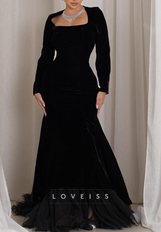 Square Long Sleeves Fitted Mermaid Simple Evening Dress