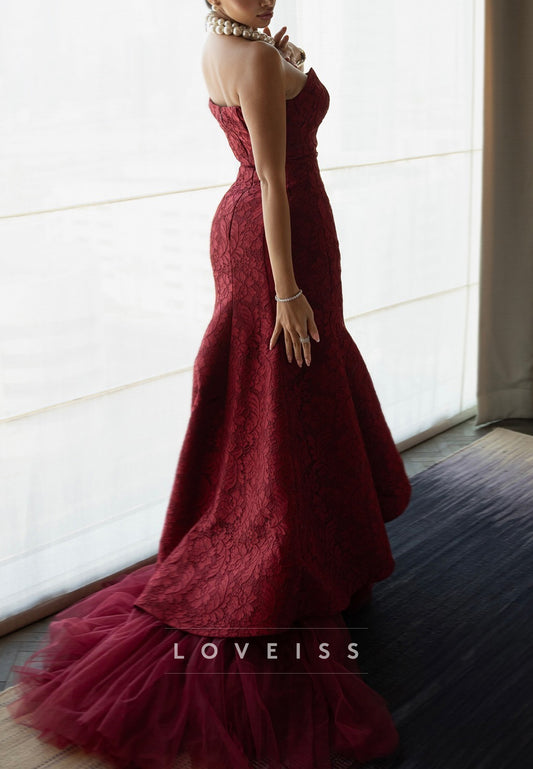 Straight Across Strapless Mermaid Appliques Evening Dress