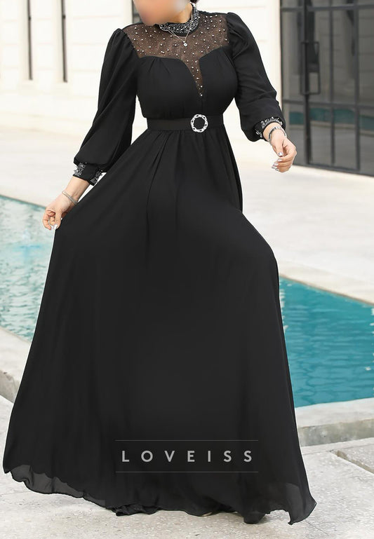 High Neck Long Sleeves Beaded A-Line Mother of Bride Dress
