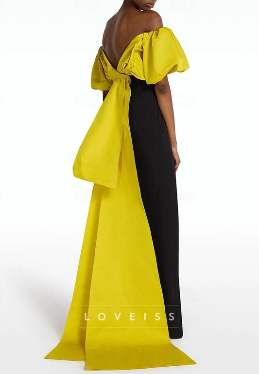 Off-Shoulder Puff Sleeves Sleek Mermaid Evening Dress