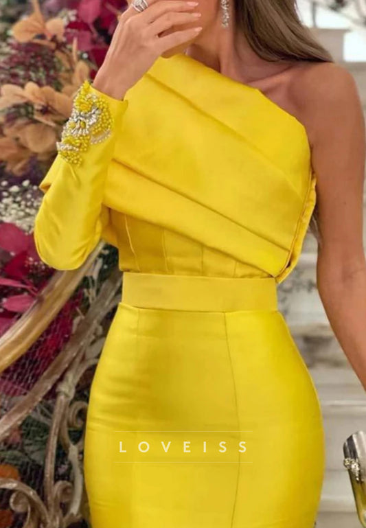 One Shoulder Sleeves Sleek Mermaid Evening Dress