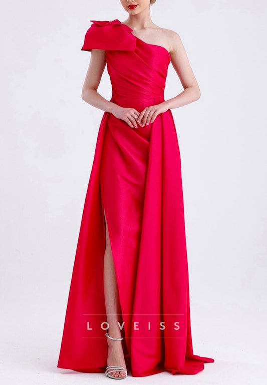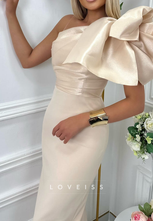 One Shoulder Pleated Bowknot Sheath Evening Dress