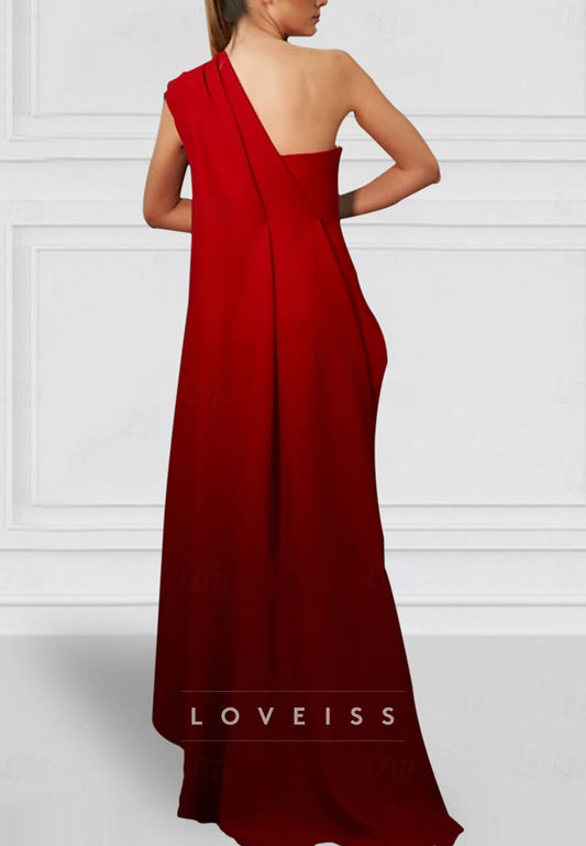 One Shoulder Sleeveless Pleated Sheath Evening Dress