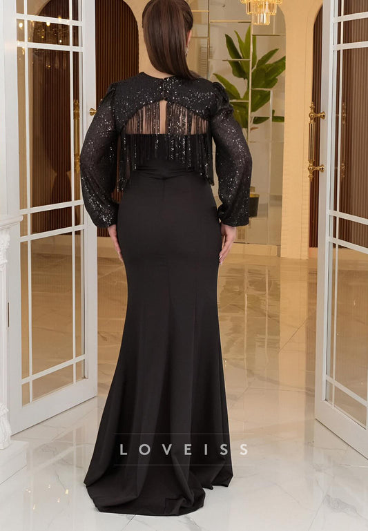 Scoop Long Sleeves Sequins Mermaid Mother of Bride Dress