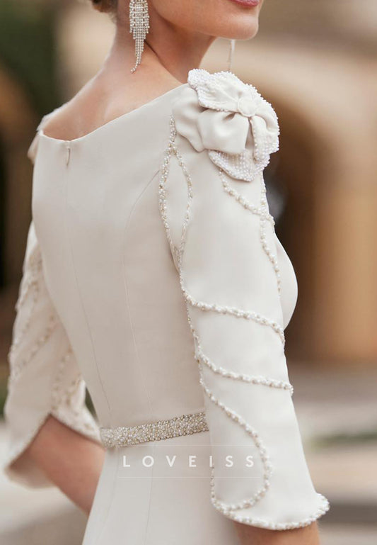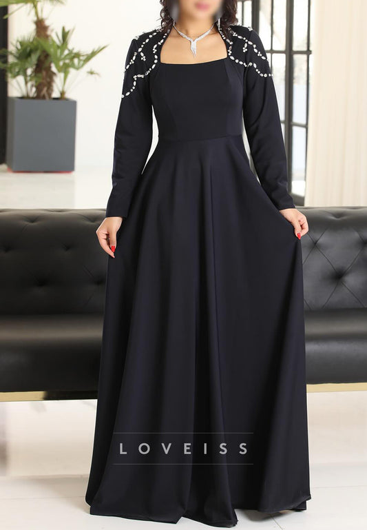 Square Long Sleeves Beaded A-Line Mother of Bride Dress
