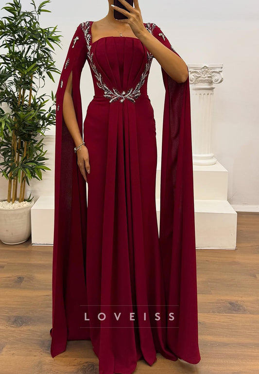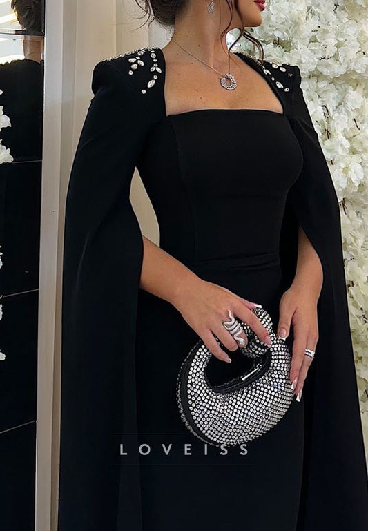 Square Long Sleeves Beaded Mermaid Evening Dress