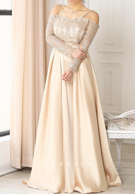 Sweetheart Long Sleeves Beaded Embroidery A-Line Mother of Bride Dress