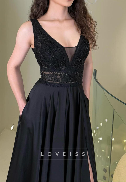 V-Neck Sleeveless Appliques A-Line Formal Dress