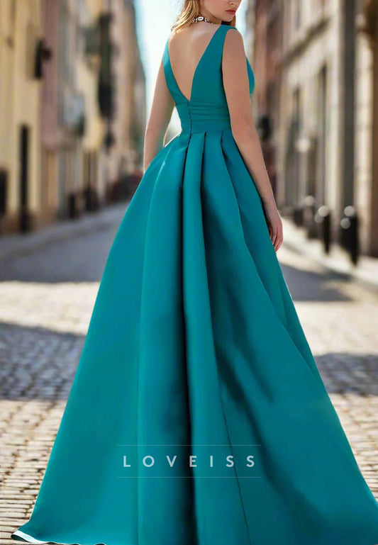 V-Neck Sleeveless Sleek Mermaid Evening Dress