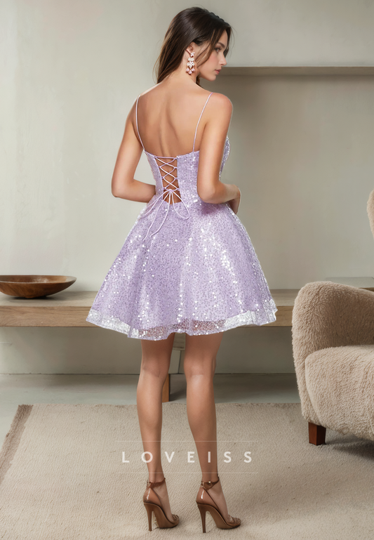 A Line Spaghetti Straps Lace Homecoming Dress Short Prom Party Dress