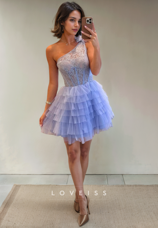 A Line One Shoulder Lace Homecoming Dress Short Graduation Dress