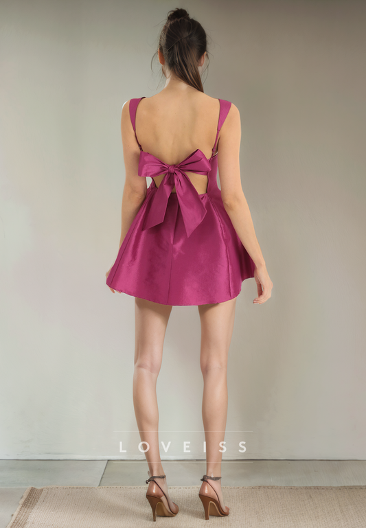A Line Plunging V Neck Cute Bow Homecoming Dress Short Prom Party Dress