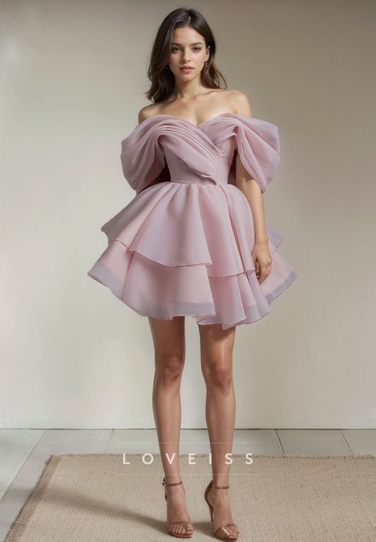 A Line Off Shoulder Pleats Short Homecoming Dress Cute Prom Party Dress