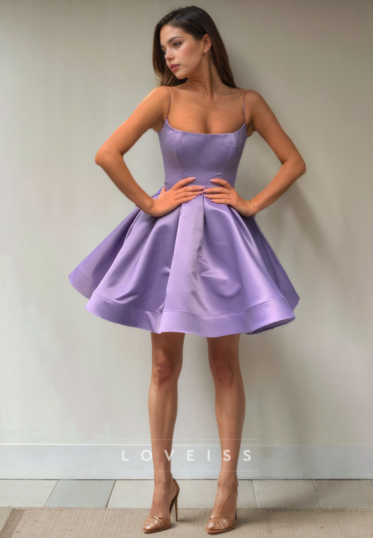A Line Spaghetti Straps Cheap Homecoming Dress with Pockets Short Graduation Dress