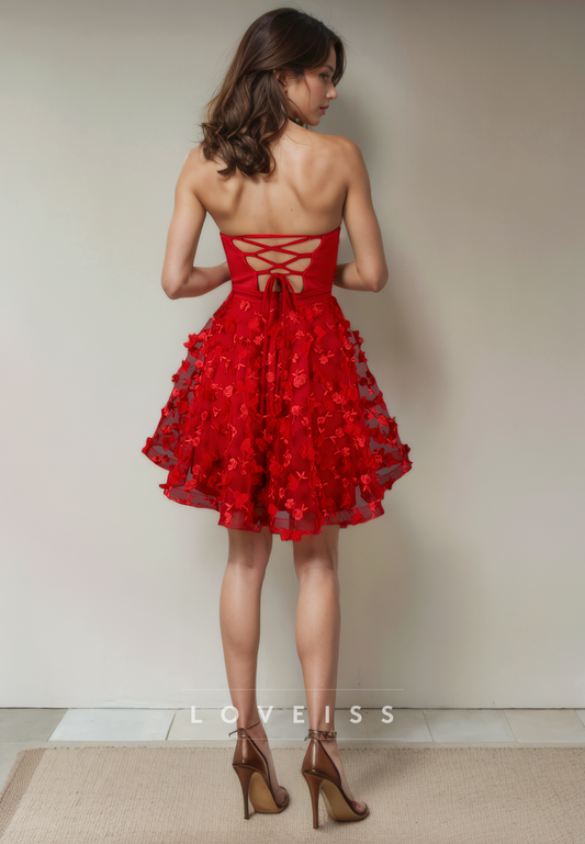 A Line Strapless Lace Appliques Short Homecoming Dress Graduation Dress