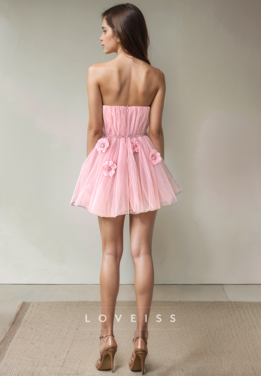 A Line Strapless Flower Pink Cute Homecoming Dress Short Graduation Dress
