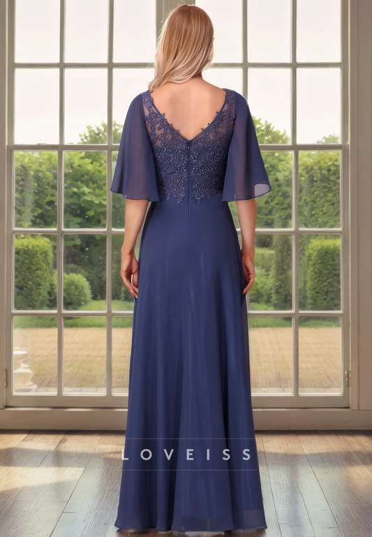 A Line Scoop Lace Appliques Short Sleeves Elegant Mother of the Bride Dress