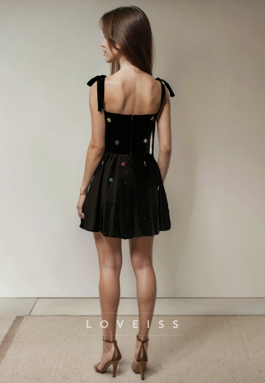 A Line Square Velvet Beads Black Homecoming Dress Short Prom Party Dress