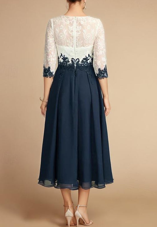 A Line Bateau Lace Appliques 3/4 Sleeves Elegant Mother of the Bride Dress