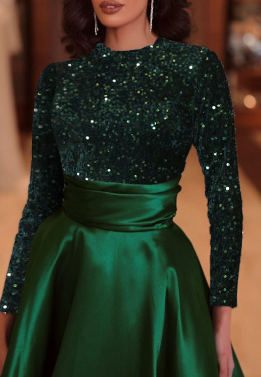A Line High Neckline Sequins Long Sleeves Mother of the Bride Dress with Pockets