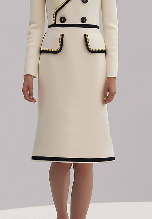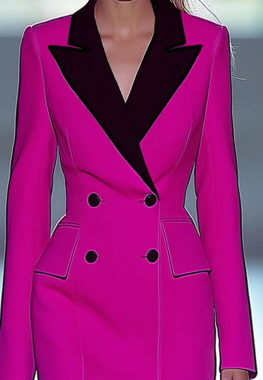 Work Formal Blazer Dress Lapel Pearl Black Line Midi Bussiness Dress
