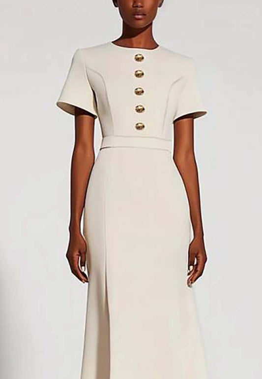 Work Semi-Formal Dress White Round Neck Button Short Sleeve Maxi Dress
