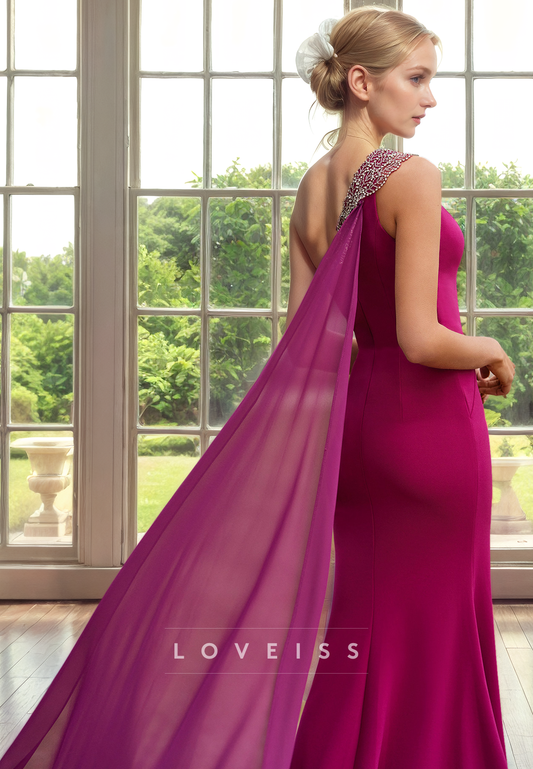 Asymmetrical Sleeveless Beaded Sleek Mermaid Evening Dress