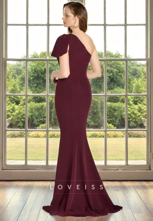 Asymmetrical Pleated Side Slit Sheath Evening Dress