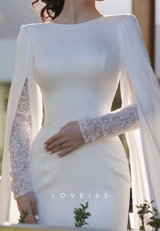 Bateau Long Sleeves Sleek Mermaid Simple Wedding Dress