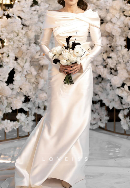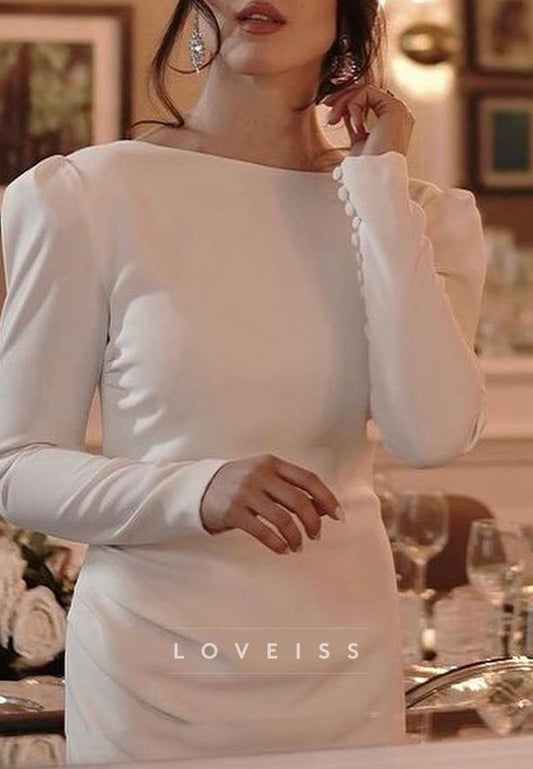 Bateau Long Sleeves Sleek Sheath Satin Wedding Dress