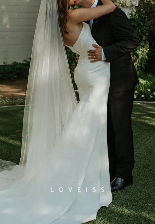 V-Neck Straps Sleek Fitted Mermaid Simple Wedding Dress