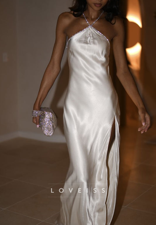 Halter Sleeveless Backless Sleek Sheath Beach Wedding Dress