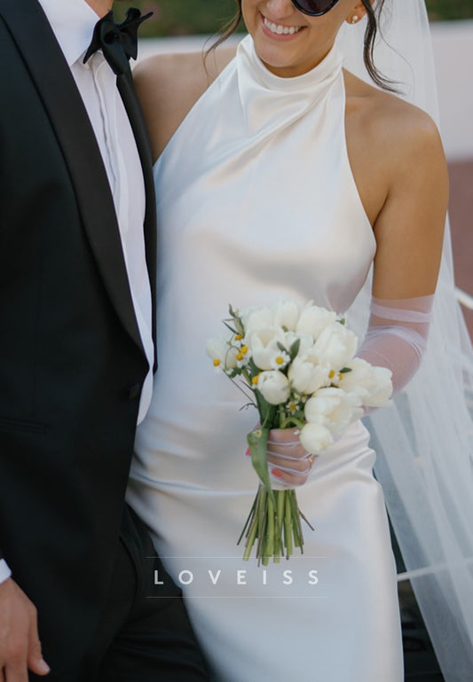 Halter V-Neck Sleeveless Sleek Mermaid Wedding Dress