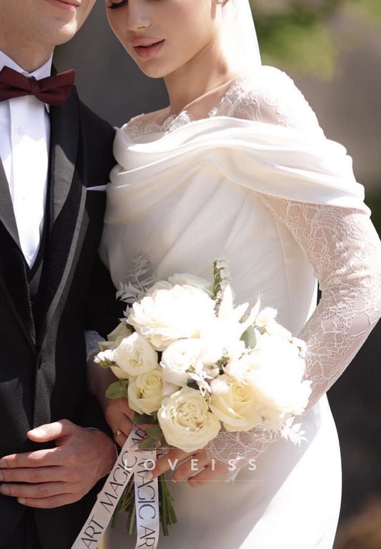 Off-Shoulder Long Sleeves Sleek Mermaid Wedding Dress