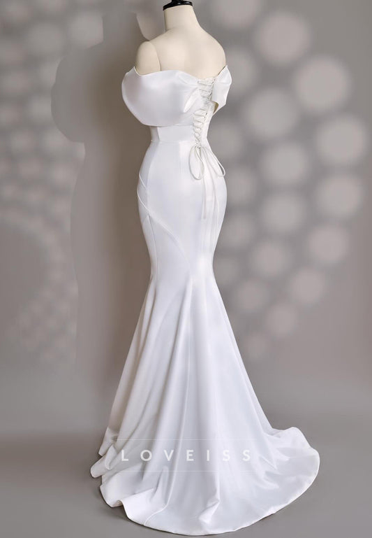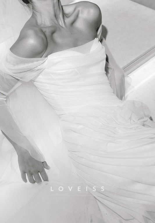 Off-Shoulder Sleek Pleated Fitted Mermaid Wedding Dress