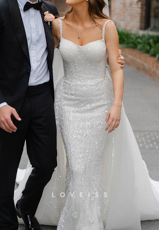 Square Spaghetti Straps Sleek Sheath Wedding Dress