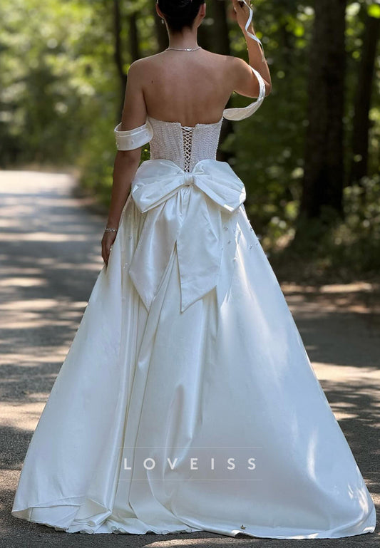 Off-Shoulder Empire Waist Sequins Satin Wedding Dress
