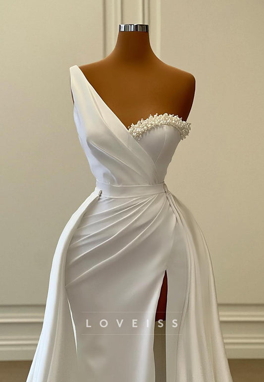 One Shoulder Sleeveless Pleated Sheath Wedding Dress
