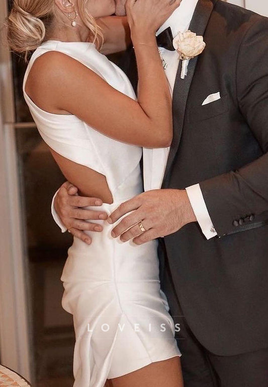 Scoop Sleeveless Sleek Sheath Beach Wedding Dress