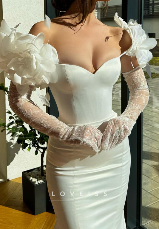 Sweetheart Floral Long Sleeves Sleek Mermaid Wedding Dress