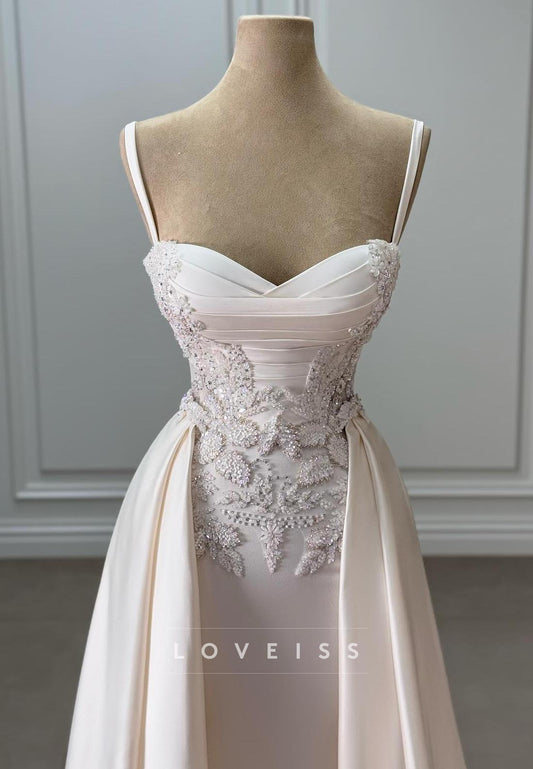 Sweetheart Spaghetti Straps Appliques Sheath Weding Dress