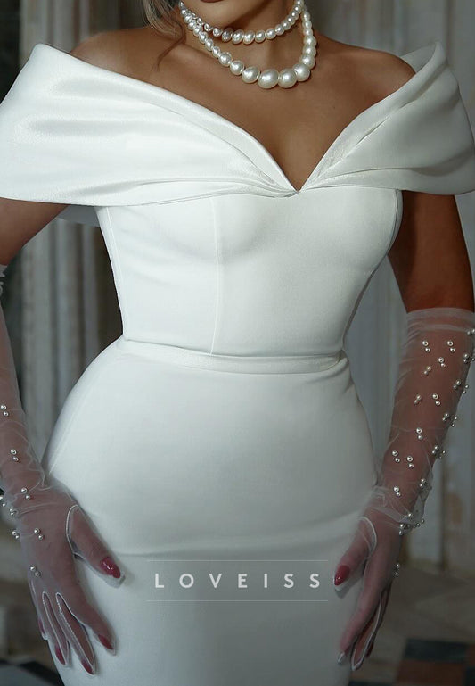 Off-Shoulder Sleeveless Pleated Sleek Mermaid Wedding Dress