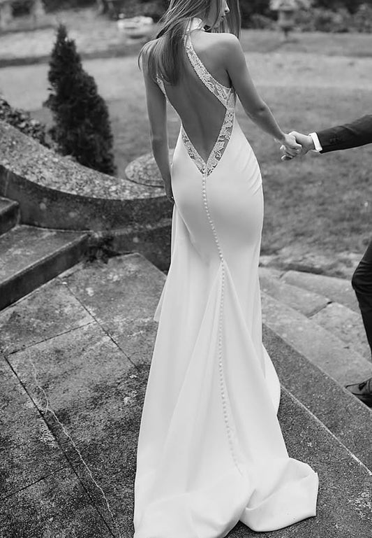 Halter Backless Appliques Mermaid Beach Wedding Dress