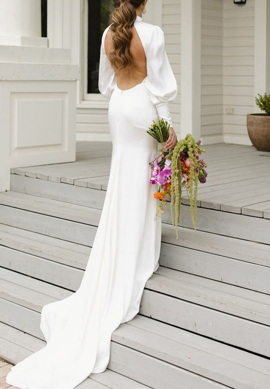 High Neck Long Sleeves Sleek Mermaid Wedding Dress